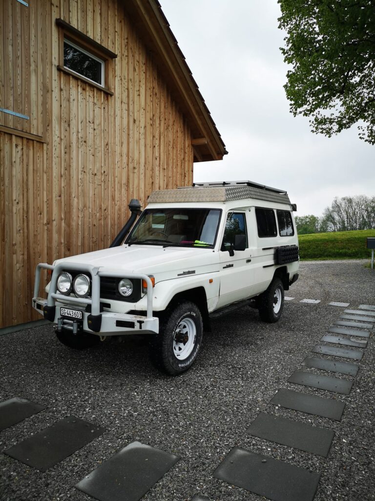 Die alte Troopy-Dame hat mit ihren 26 Jahren und über 200’000 Kilometer wahrscheinlich schon mehr erlebt als wir. Sie stammt ursprünglich aus Australien und ist daher ein Rechtslenker.